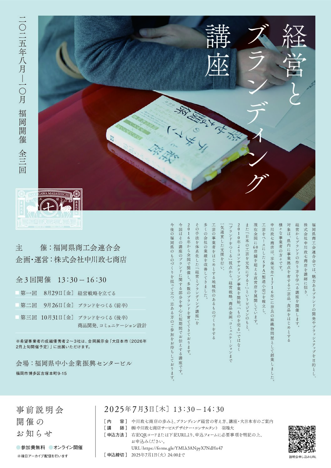 内容: 中川政七商店の歩みと、ブランディング経営の考え方、講座・大日本市のご案内