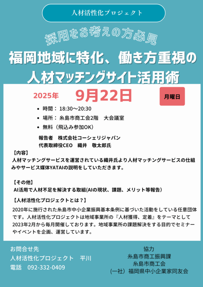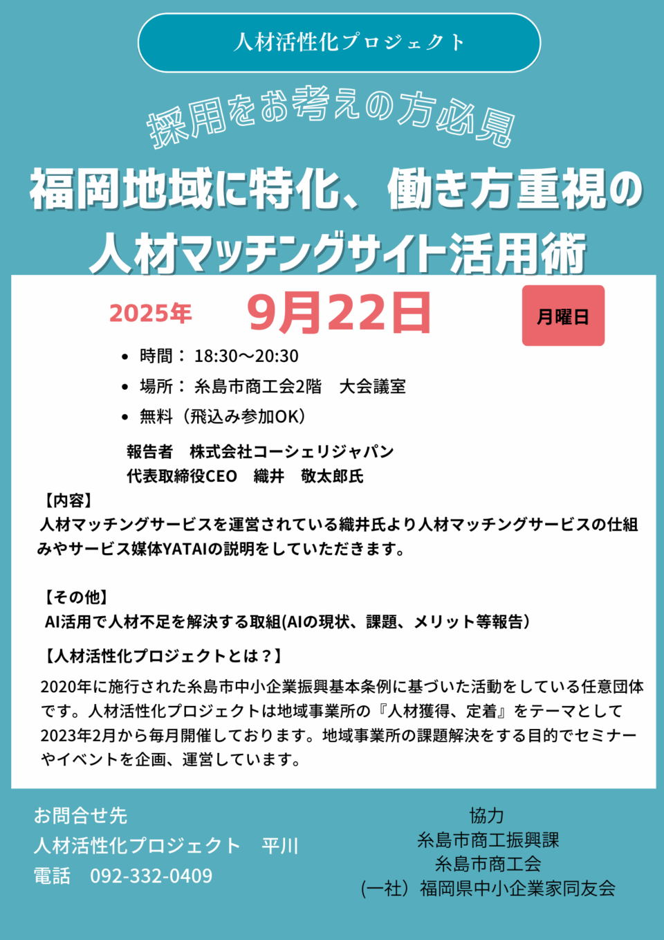 問合せ先 人材活性化プロジェクト 平川 092-332-0409